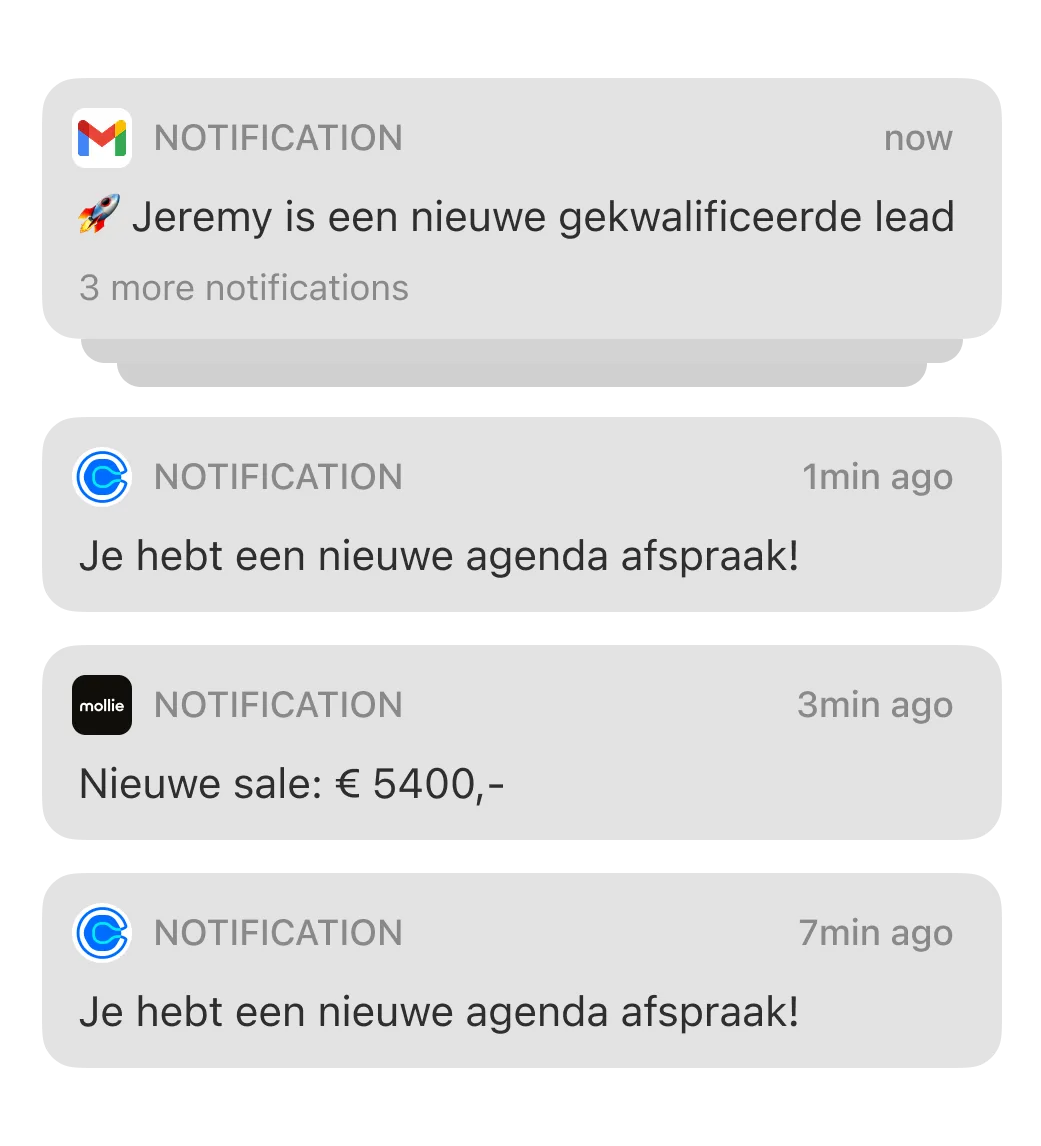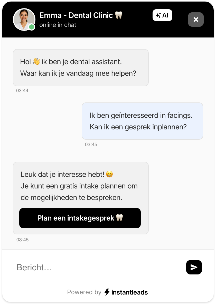 Onze klanten waren klaar met gemiste kansen en handmatig processen. Sinds hun AI-systeem draait, halen ze meer afspraken uit dezelfde traffic, zonder extra werk.